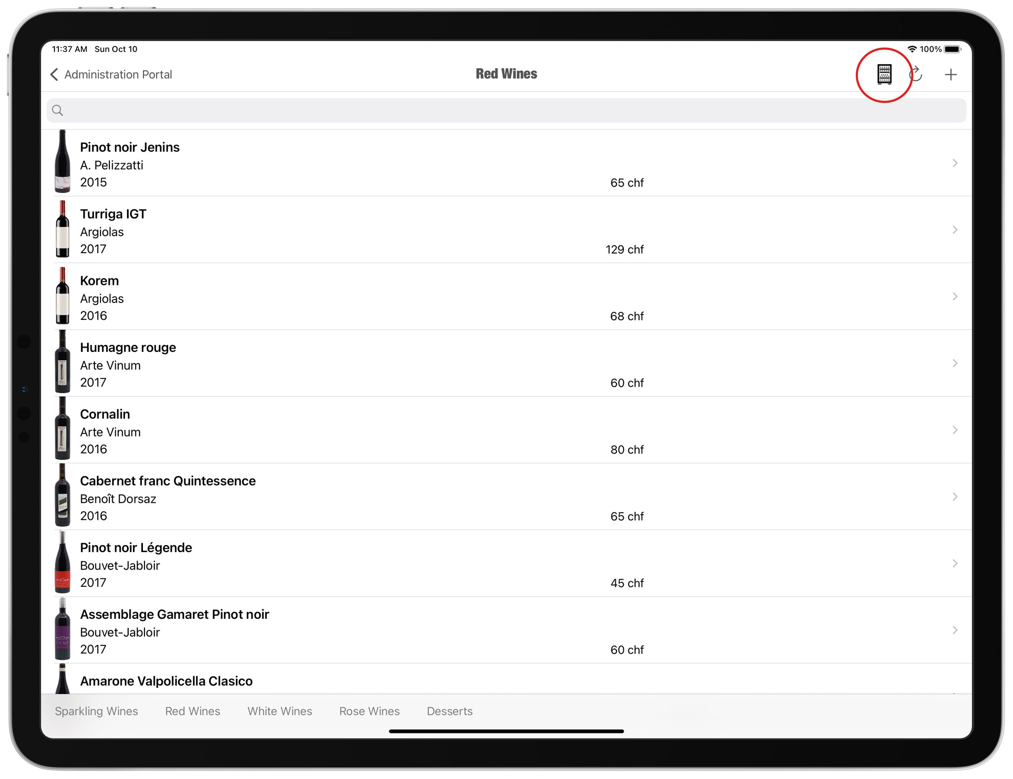 In version 2.30 of COENA, the application’s interface goes full-screen: there are no more “black bands” on the right and left sides of the screen on the 11″ and 12.9″ iPad (iPad Pro). Using the entire screen space provides customers with a more immersive experience, as well as increased readability for wine lists with a lot of references.