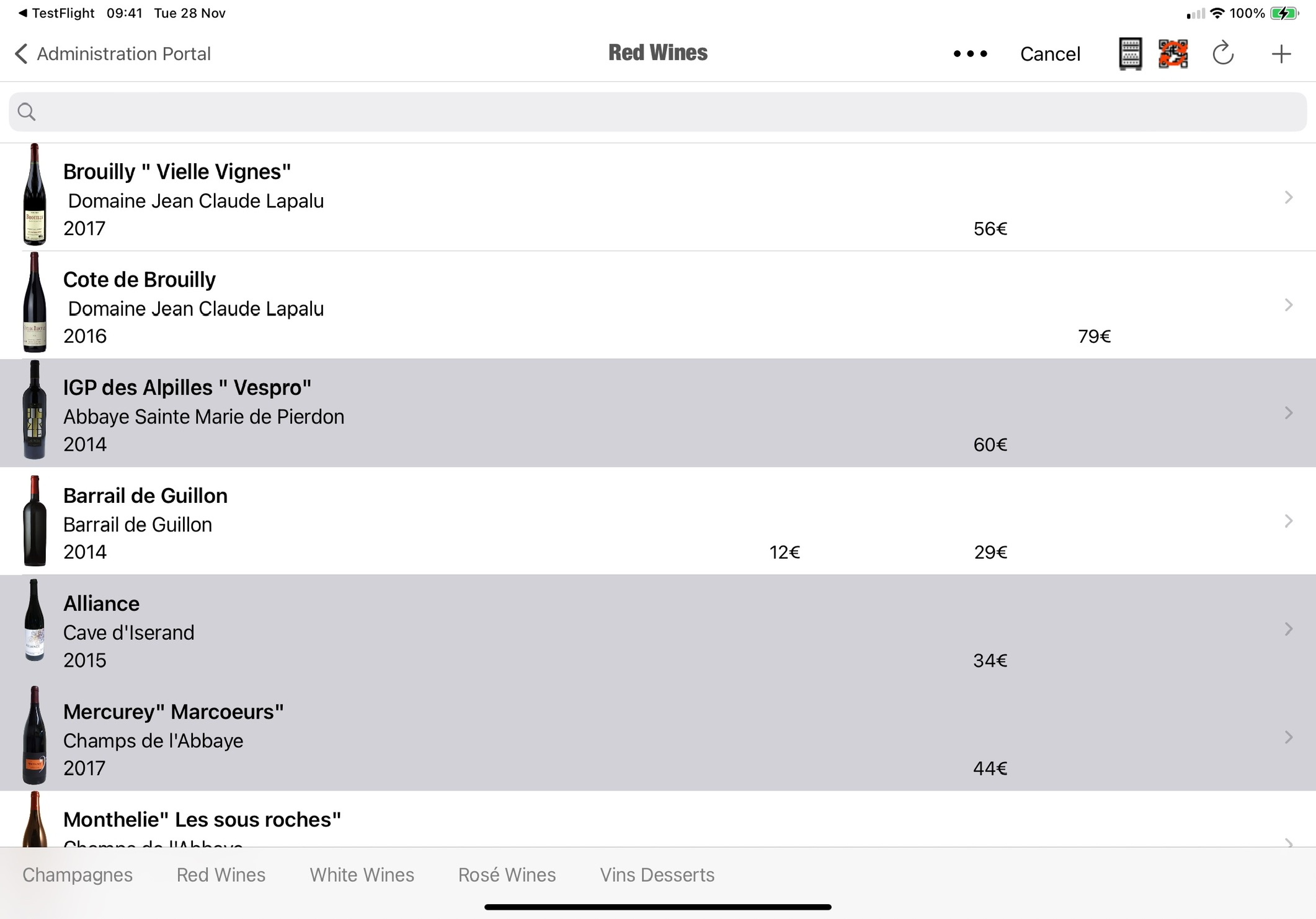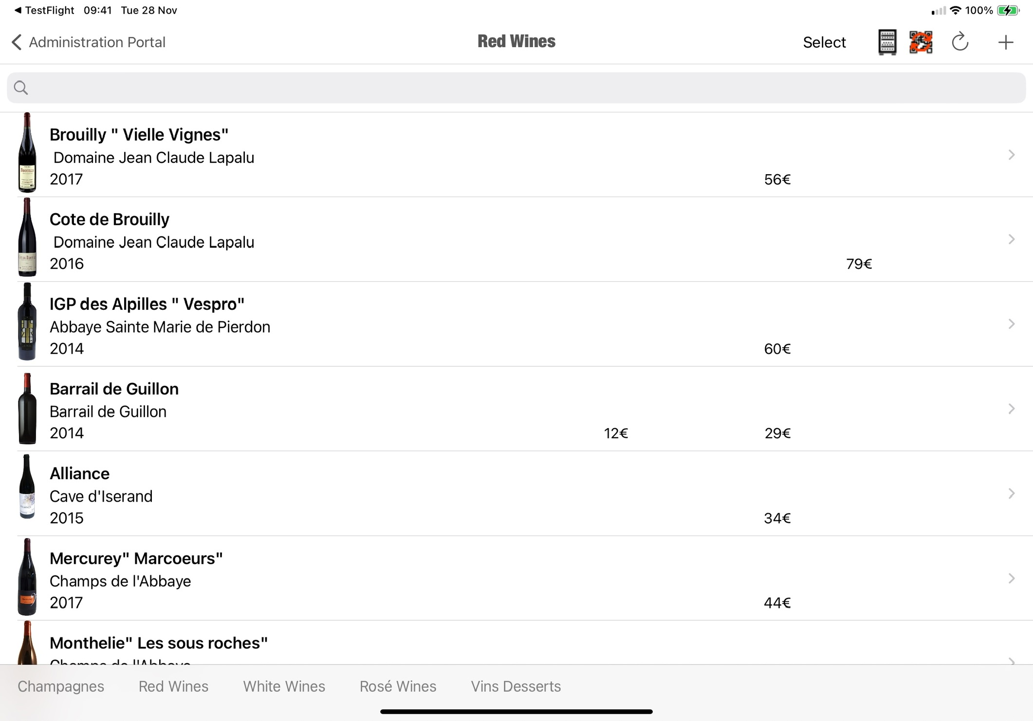 At the heart of this update is the addition of a new button on the top right of the wine management screen, labeled “Select”.